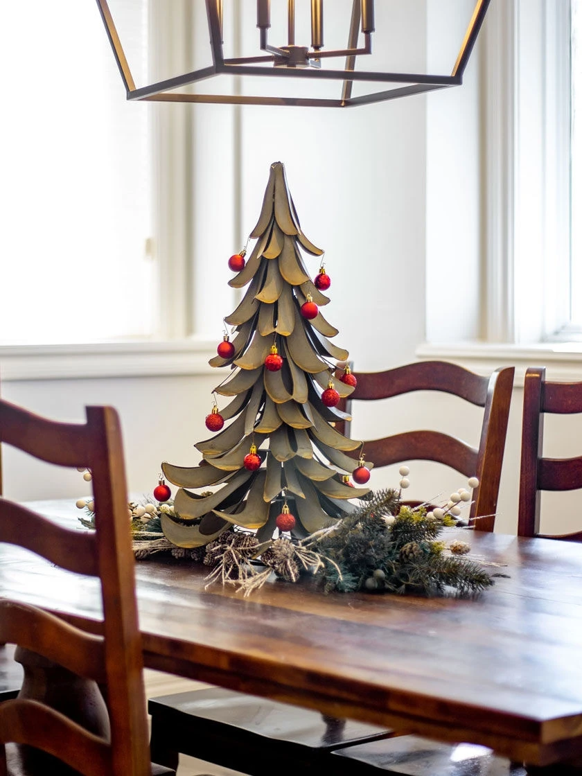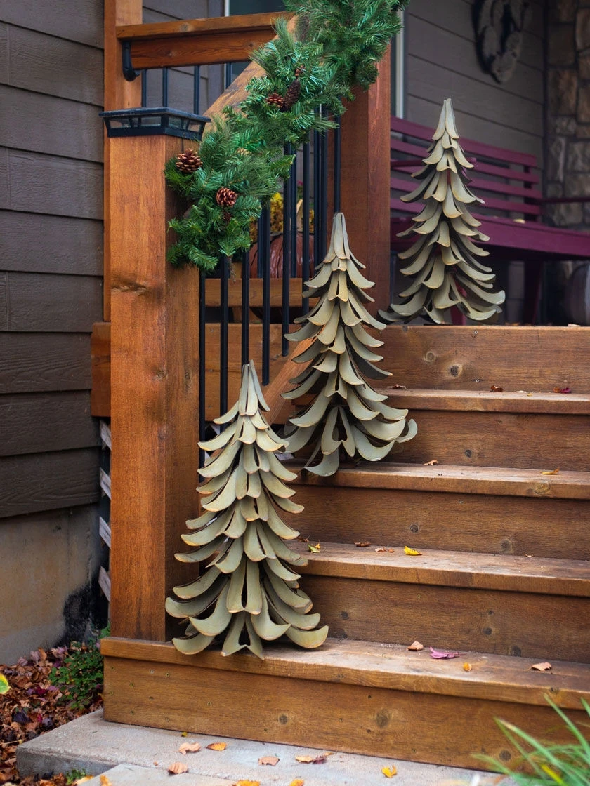 Year round beauty with a holly jolly holiday flare. Constructed in the USA of 100% galvanized steel, this beautiful accent piece is perfect for the porch, patio, garden, or as a tabletop centerpiece. The realistic patina finish will never fade or rust, and will last for season after season.