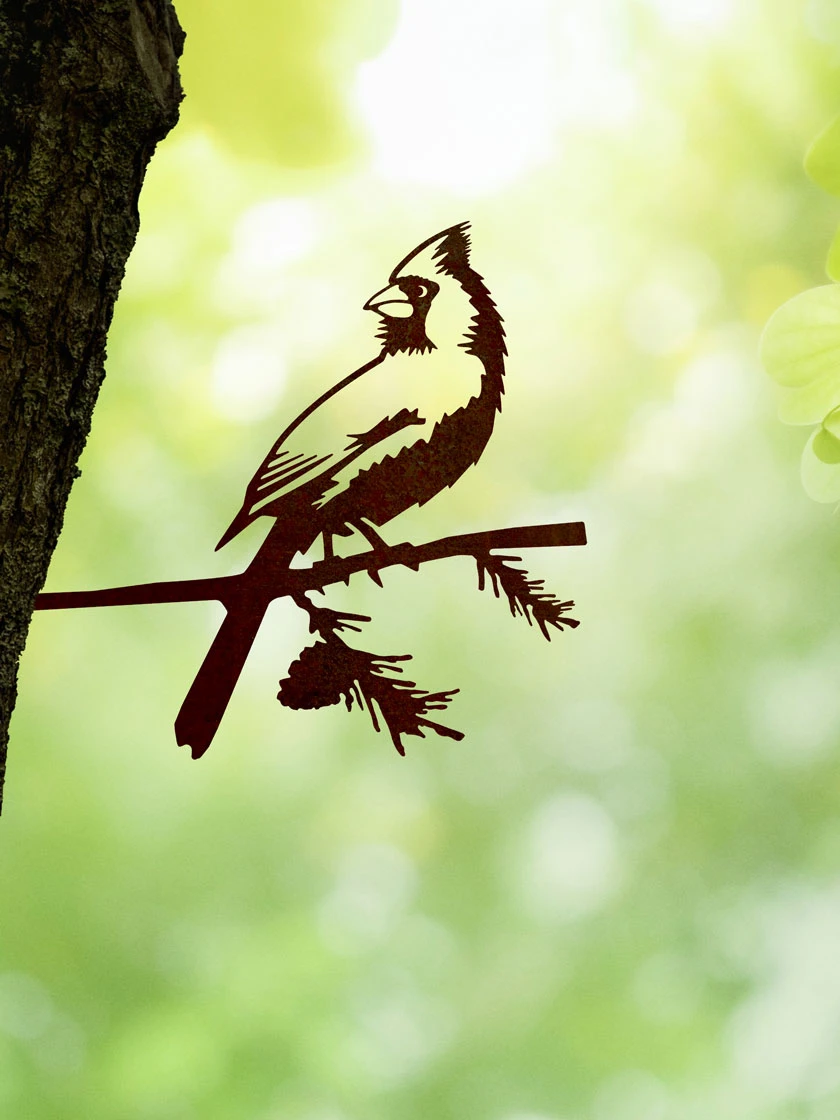With its brilliant red plumage and cheerful song, the cardinal is a much-loved bird. Pick a post, fence, tree, or wall where you can see the silhouette against the sky or a single light color, grab a hammer and tap it in.​ Its beauty will shift with the changing light, weather, and seasons for years of enjoyment.