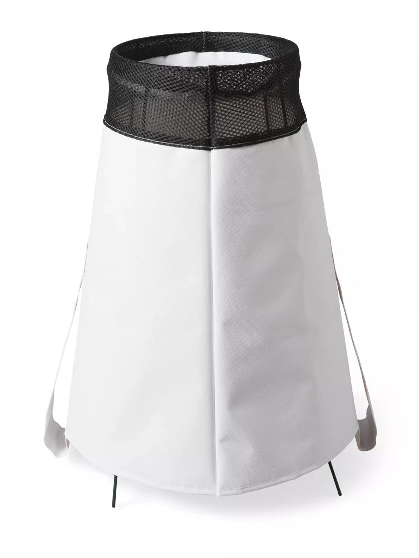 1. The reflective white cover prevents heat build-up, and the mesh top allows heat and moisture to escape, reducing the chance of the plant breaking dormancy too early. (Styrofoam rose cones hold in too much heat and moisture.)